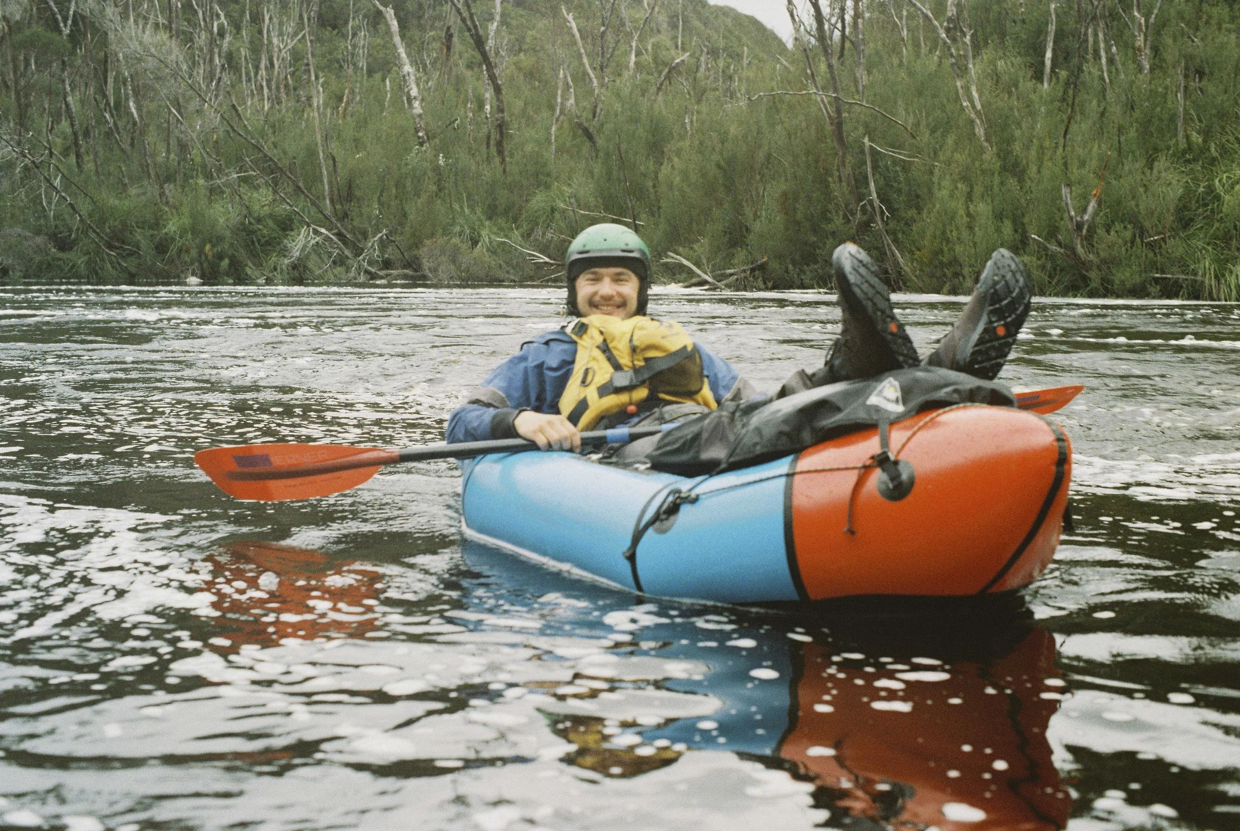 After our paddle, Gabe said that this level ‘fit the river’s character’ and that our paddle was a ‘good day out’. I’d say this is a fair assessment by a competent white water kayaker. For the beginner packrafters out there I’d say 10 000ML/day on the lower Crossing is a reasonably high level and would need similar skills to running the Mersey White Water Course or Mellifont Street at Bradys. There was at least one feature we encountered that we agreed would be classed as grade three white water.