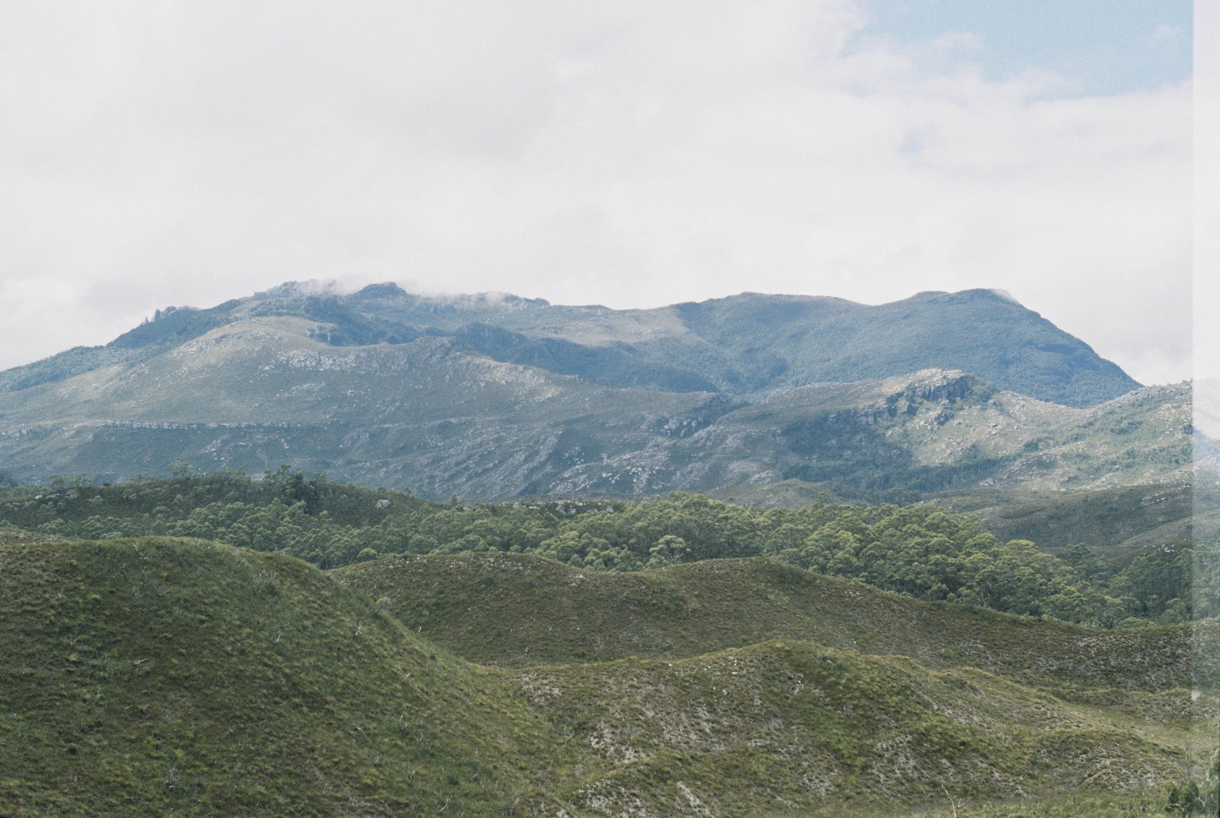 Gabe standing on top of our buttongrass knoll over the Davey River. Pentax MX, Kodak Portra 800, Nov 2025.
