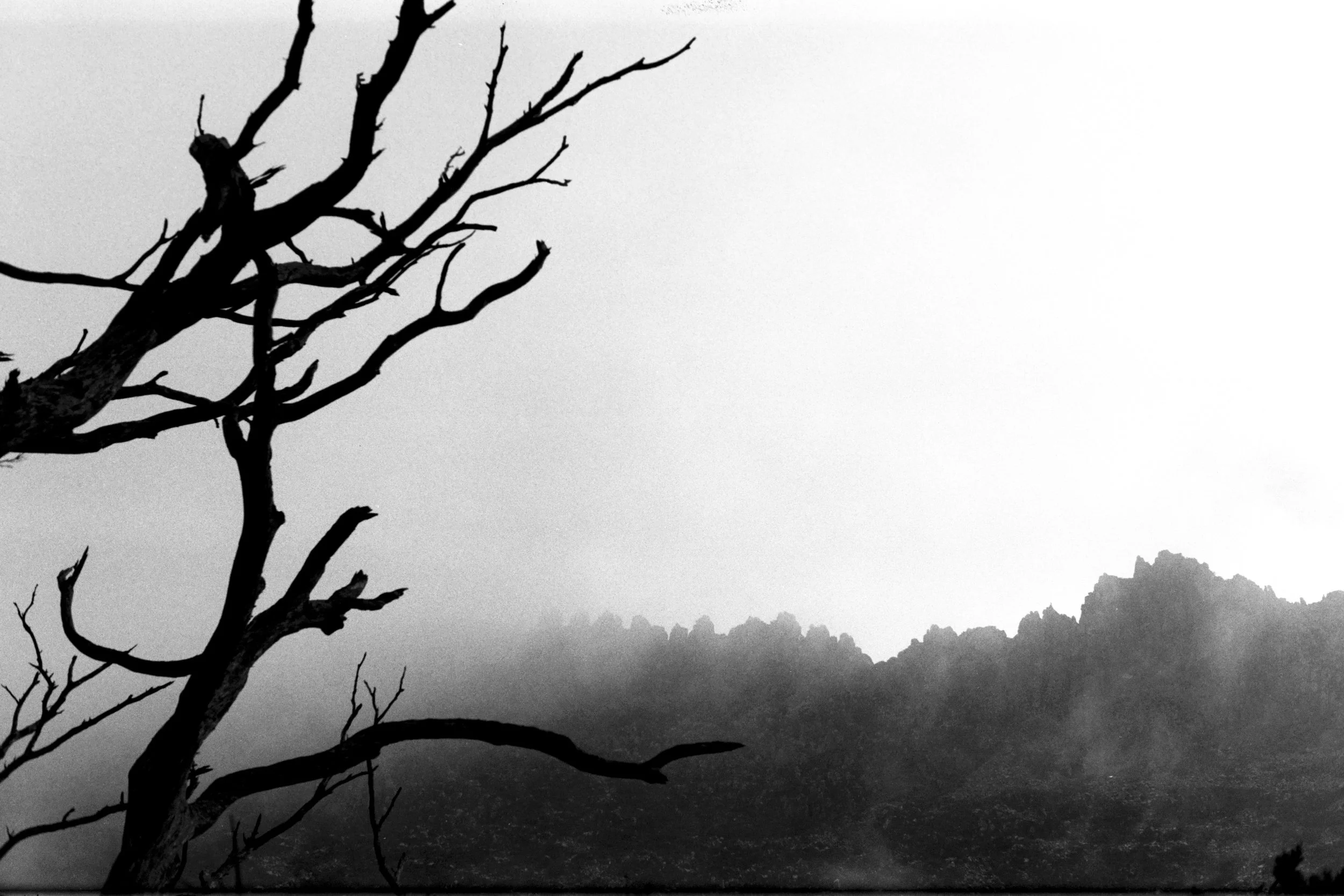 Tree Silhouette, Dolerite Skyline. Pentax MX, Ilford 50 BW, Dec 2019.