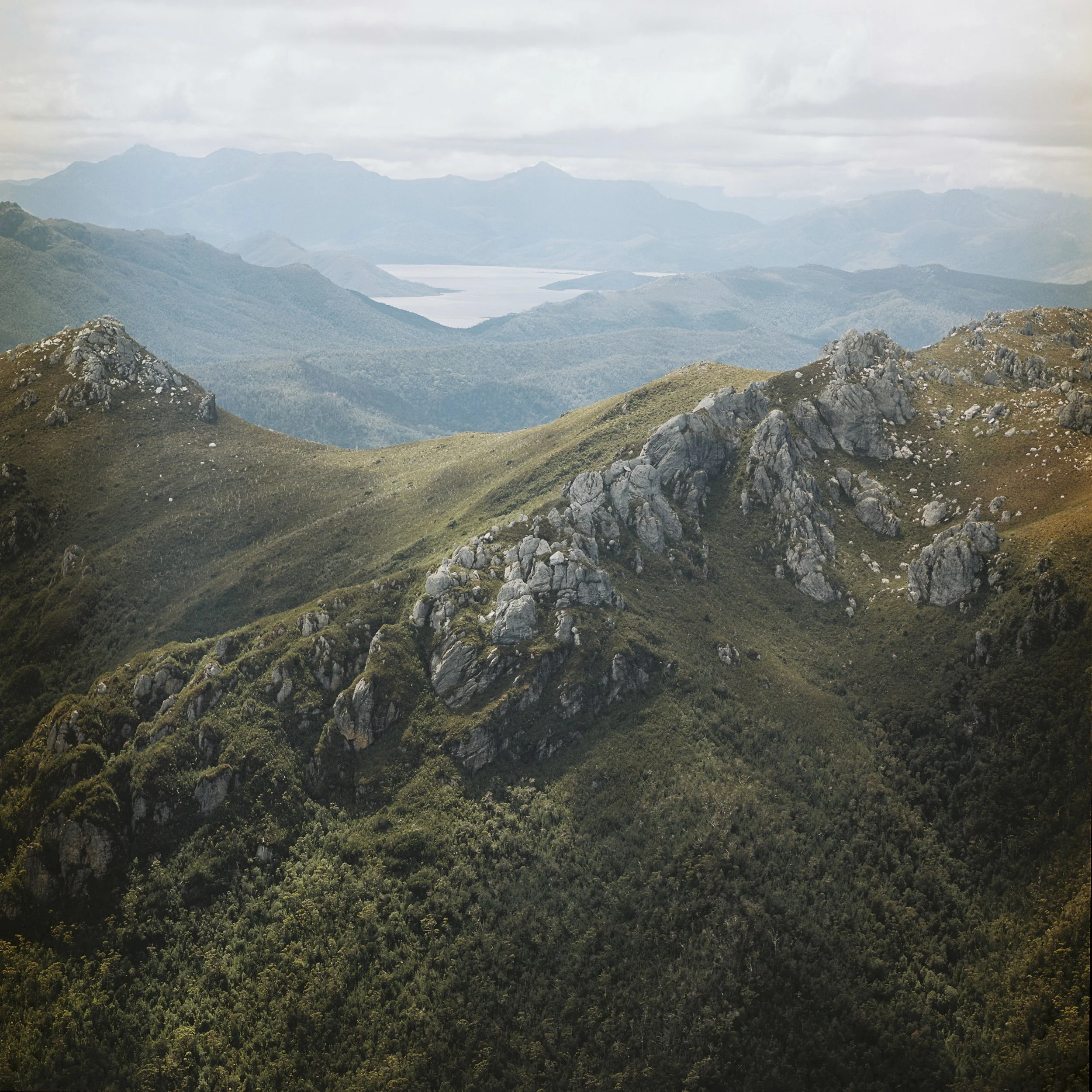 Quartzite Range, Pedder Impoundment beyond. Hasselblad 500CM, Ektar 100, Nov 2023.