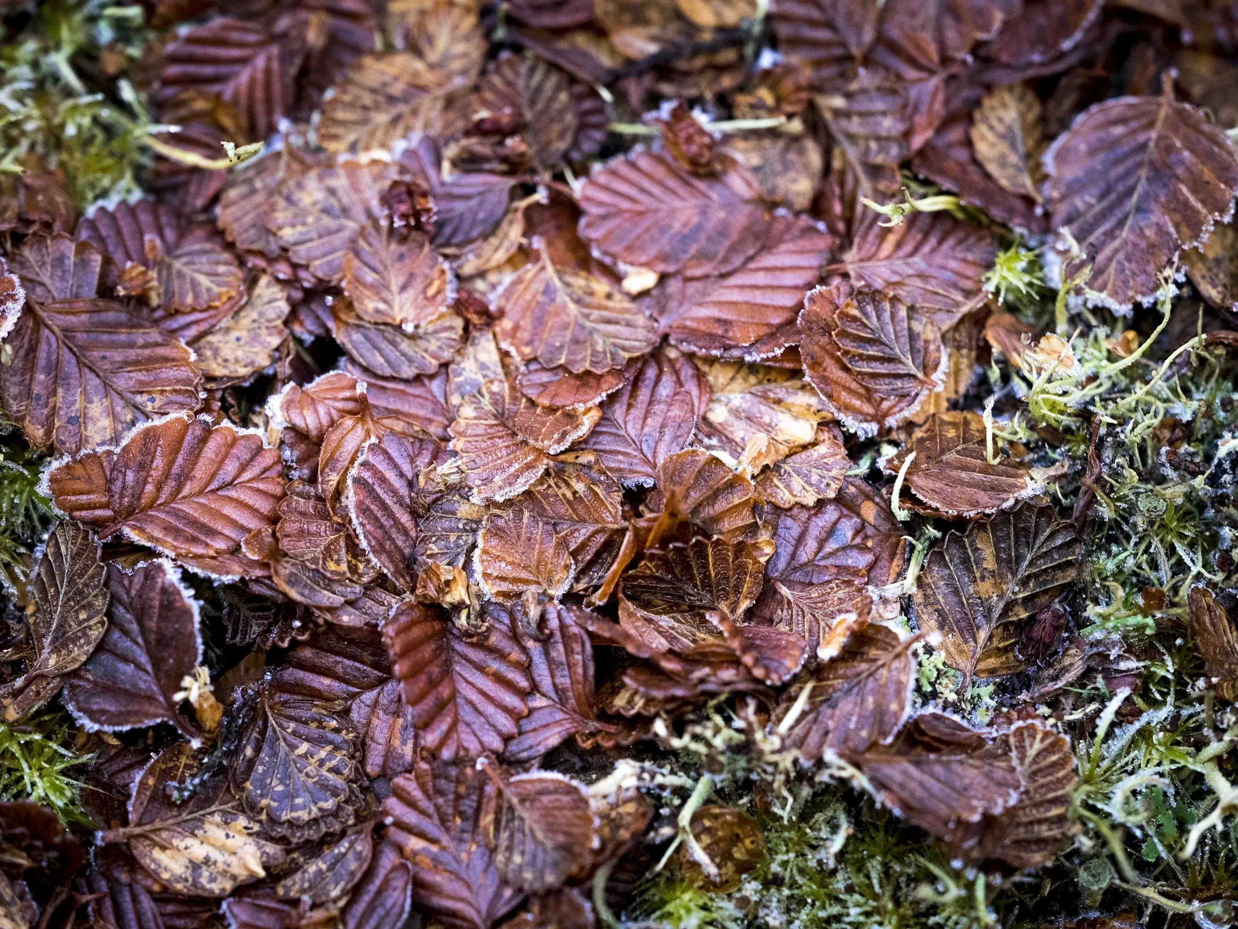 Frozen Fagus Leaves, Olympus Em-1, August 2017.