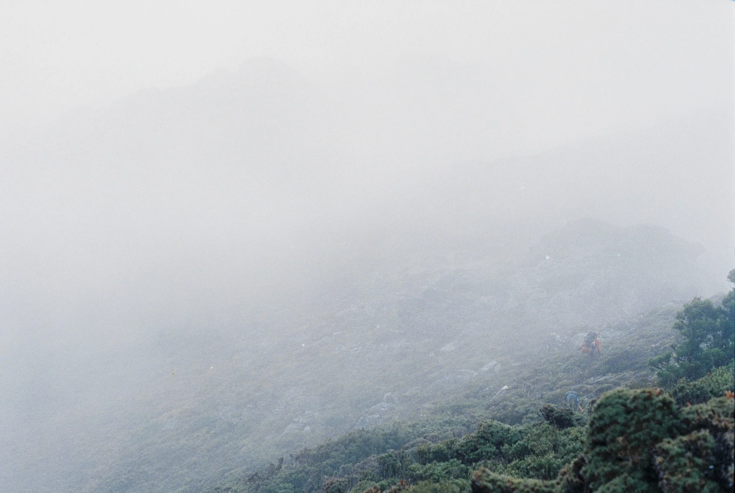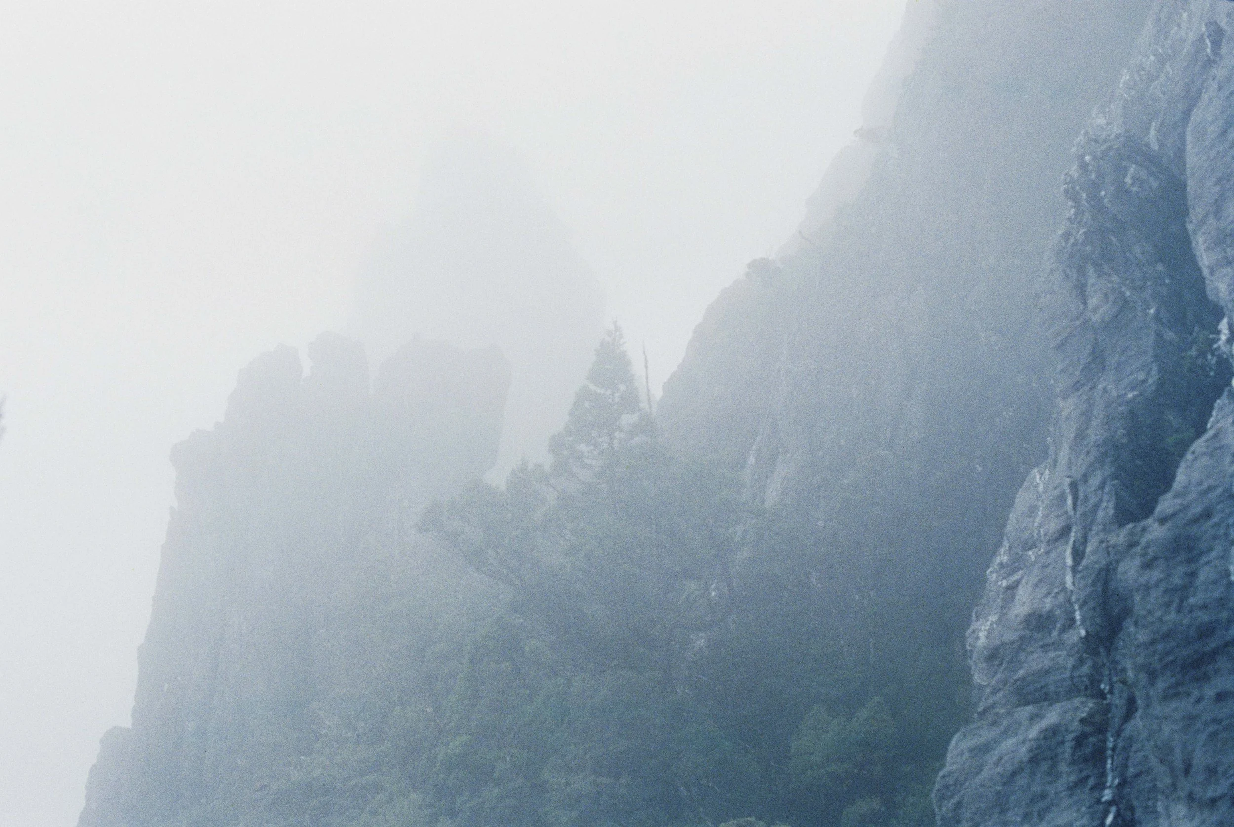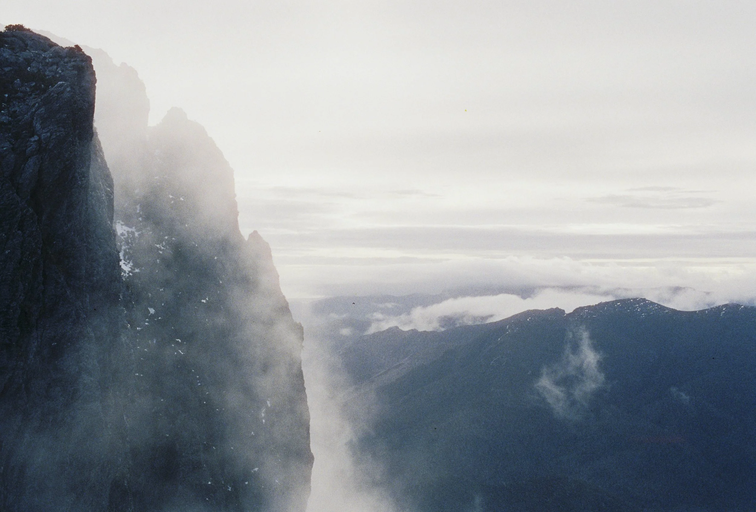 Misty cliffs, Eastern Arthurs. Pentax MX, Cinstill 800, Nov 2025.