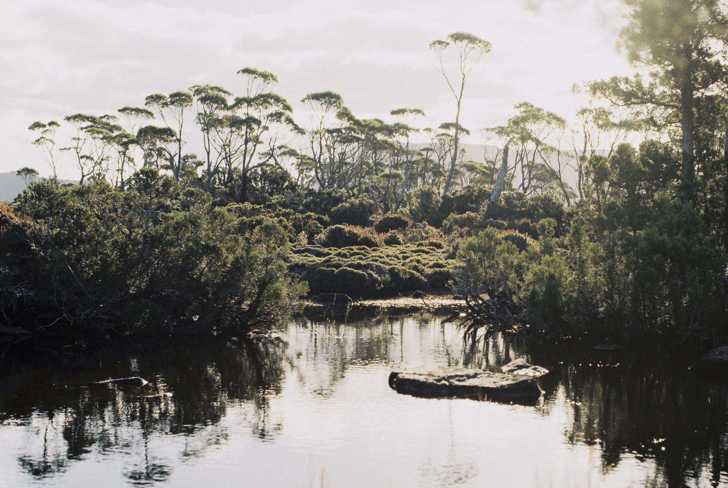 Alpine Tarn and Pencil Pines. Pentax MX, Kodak Gold 200, Feb 2026.